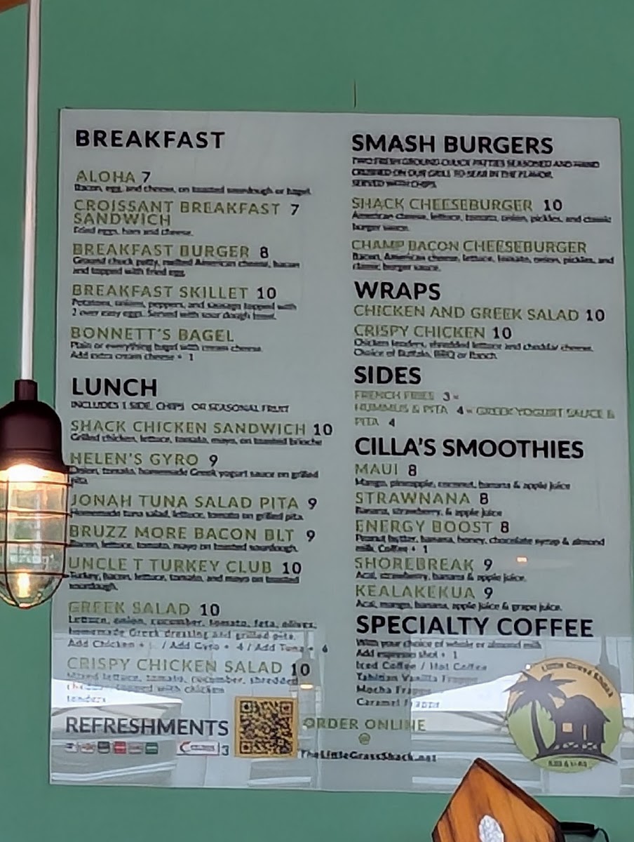 Welcome to The Little Grass Shack, a culinary oasis tucked away among the car dealerships at 4654 W King St, Cocoa, FL. This hidden gem specializes in a delightful array of dishes that cater to diverse palates. Patrons rave about the satisfying smash cheeseburger and scrumptious mahi tacos, all served with a side of crispy fries or refreshing smoothies like the popular Maui smoothie.